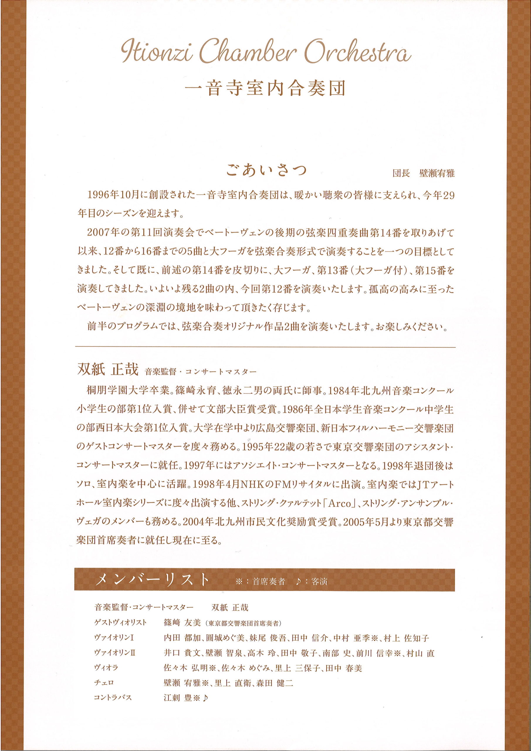 - 音楽監督・コンサートマスター・指揮:双紙 正哉
